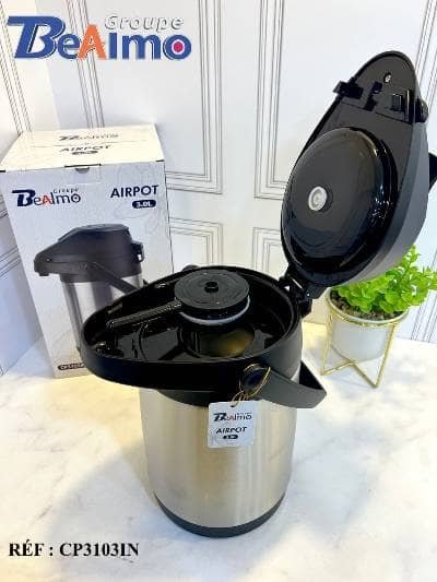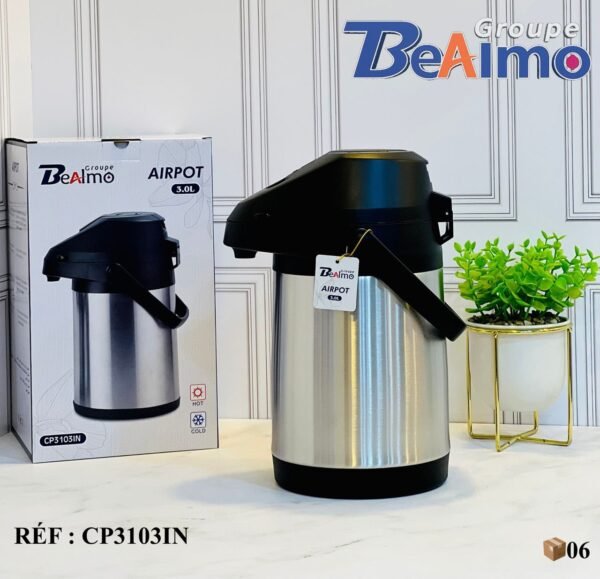 ترمس عملي وأنيق من إنتاج Groupe BeAlmo، مصنوع من الستانلس ستيل عالي الجودة بسعة 3.0 لتر، مصمم لحفظ المشروبات الساخنة والباردة بكفاءة. يتميز بغطاء ومقبض بلاستيكي مقاوم للحرارة، وسهولة في الاستخدام بفضل آلية الضغط العلوية. مناسب للاستخدام المنزلي، المكتبي، أو المناسبات، ويجمع بين الأداء العالي والتصميم العصري. رقم المرجع: CP3103IN.