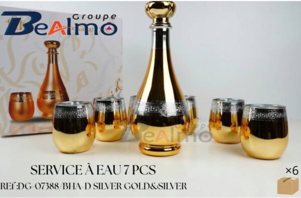 سيرفيس مياه 7 قطع هو الحل المثالي لإضافة لمسة من الأناقة إلى طاولة الطعام الخاصة بك، حيث يجمع بين التصميم العصري والجودة العالية التي تناسب أذواق الجميع. سواء كنت تستقبل ضيوفاً، أو تستخدمه بشكل يومي، فإن هذا السيرفيس سيضفي على طاولتك إحساساً بالرقي والتميز.