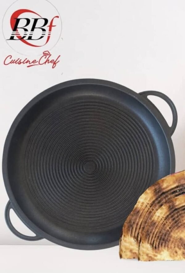 المقابض الجانبية توفر سهولة وأمان في الحمل والاستخدام، بينما الحجم المناسب يجعلها مثالية لتحضير اللحوم، الدجاج، الخضروات وحتى الخبز المحمص. بفضل خامتها المتينة، توزع الحرارة بشكل متساوٍ لضمان طهي متكامل وسريع.