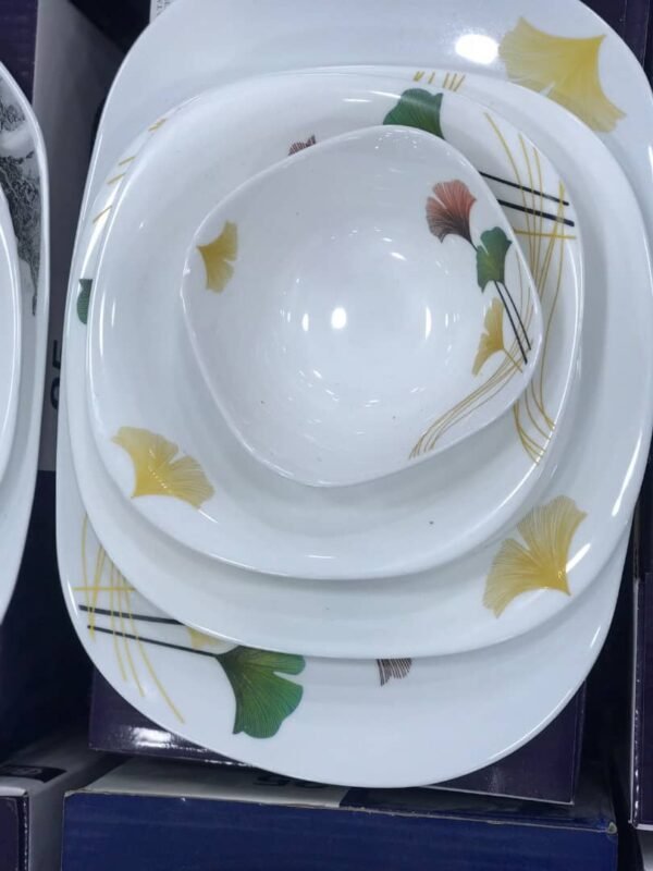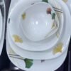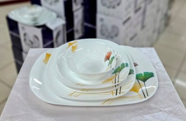 طقم سفرة متكامل من “Blue Kitchen” مكون من 25 قطعة، يجمع بين الأناقة والتنوع في التصاميم. يتوفر بعدة أنماط فنية تشمل الزخارف النباتية، الريش، النقاط الذهبية، والنقوش الهندسية، وكلها مطبوعة على قاعدة بيضاء أنيقة تضفي لمسة راقية على مائدة الطعام. يحتوي الطقم على:
