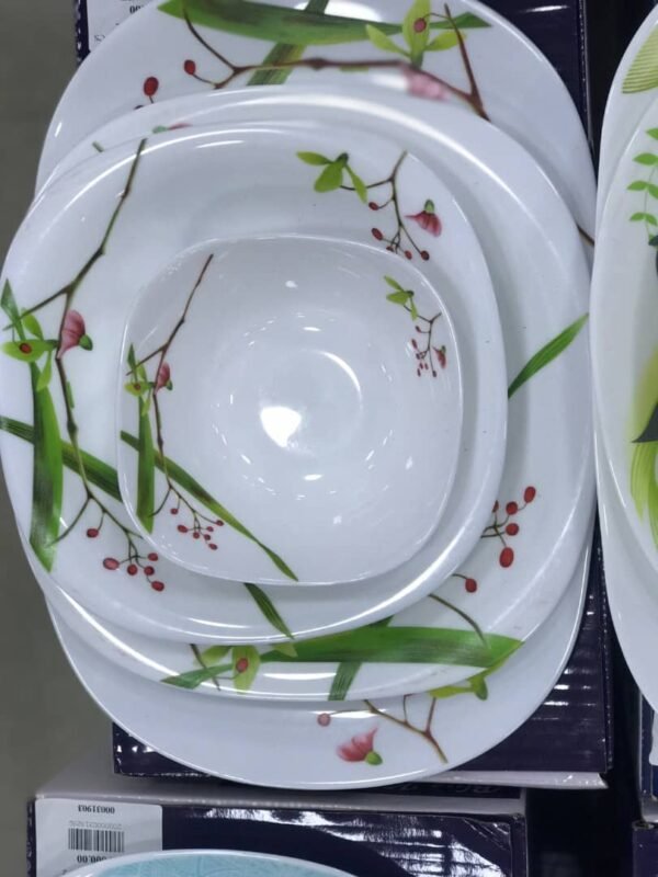 طقم سفرة متكامل من “Blue Kitchen” مكون من 25 قطعة، يجمع بين الأناقة والتنوع في التصاميم. يتوفر بعدة أنماط فنية تشمل الزخارف النباتية، الريش، النقاط الذهبية، والنقوش الهندسية، وكلها مطبوعة على قاعدة بيضاء أنيقة تضفي لمسة راقية على مائدة الطعام. يحتوي الطقم على: