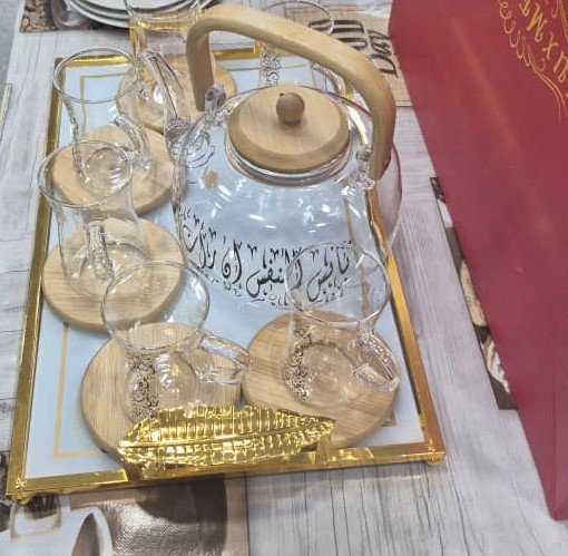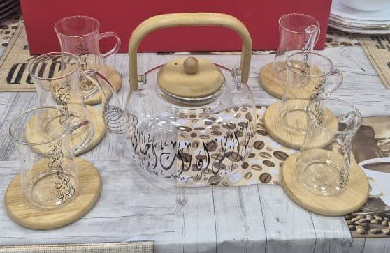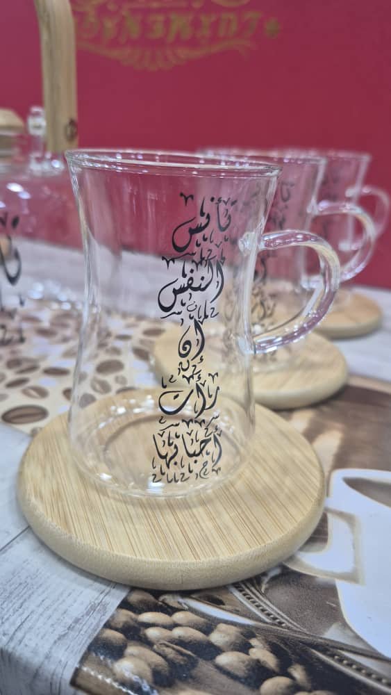 طقم الشاي الزجاجي المزخرف بالخط العربي