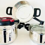 قدر بخاري مع قاعدة مثقبة ومقابض جانبية سوداء، مصمم لطهي الخضروات واللحوم بطريقة صحية بالبخار.