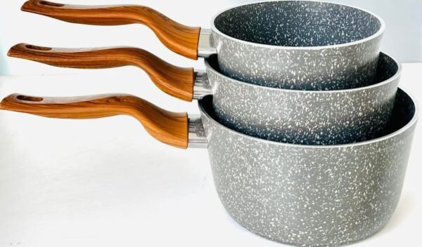 هذا الطقم العصري يجمع بين الأناقة والوظيفة العملية ليمنحك تجربة طهي متكاملة. مصنوع من خامة الجرانيت عالية الجودة التي توفر سطحًا غير لاصق، مما يسهل الطهي والتنظيف ويقلل الحاجة لاستخدام الزيوت. يتميز بلونه الرمادي المنقط الذي يضفي لمسة عصرية على مطبخك، مع مقابض خشبية ذات تصميم مريح وآمن أثناء الاستخدام.