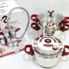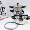مصنوع من ستانلس ستيل عالي الجودة، مقاوم للصدأ وسهل التنظيف. المقابض مريحة وآمنة، والتصميم متناسق يناسب كل المطابخ. الطقم مثالي للعائلات، ويغنيك عن شراء أدوات منفصلة.