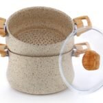 يحتوي على سلة معدنية داخلية للقلي أو التبخير، مما يجعله متعدد الاستخدامات: طهي، سلق، تبخير، وقلي—all في طاجين واحد. تصميم يجمع بين الوظيفة والجمالية، ويُعد خياراً ممتازاً لكل مطبخ عصري