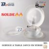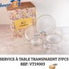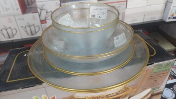 مصنوعة من الزجاج المتين عالي الجودة، توفر هذه المجموعة القدرة على تحمل الاستخدام اليومي دون التنازل عن المظهر. الأطباق شفافة وتضفي لمسة من الرقي لأي طاولة طعام. كما أنها سهلة التنظيف ويمكن استخدامها بأمان في غسالة الأطباق، مما يجعلها مريحة للاستخدام في الحياة اليومية.