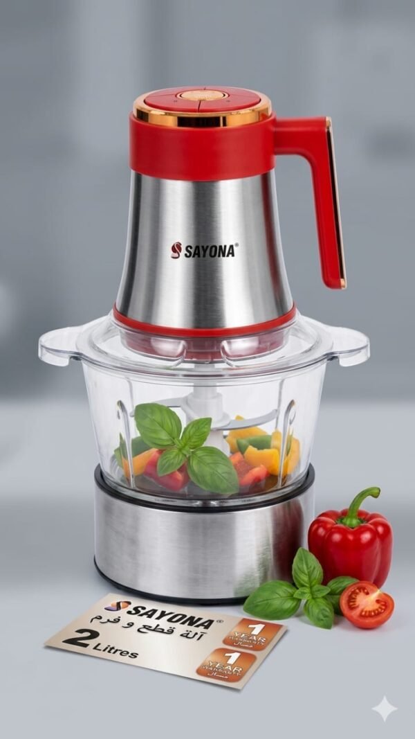حوّل تحضير الطعام إلى تجربة سهلة وسريعة مع SAYONA Multi Function Food Blender EL-5425، الجهاز العملي الذي يجمع بين الأداء القوي والتصميم العصري. بفضل سعته الكبيرة 2 لتر، يمكنك تقطيع وفرم مختلف المكونات من الخضار والفواكه إلى اللحوم بسهولة، مما يجعله خيارًا مثاليًا للمطابخ العائلية.