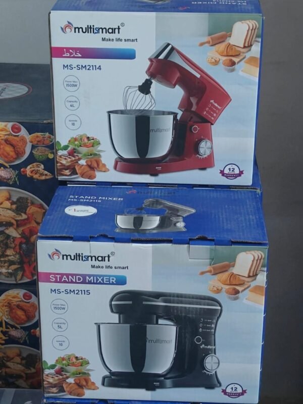 الفئة: أجهزة مطبخ – خلاط كهربائي ثابت الموديلات: MS-SM2114 (أحمر – 4 لتر) / MS-SM2115 (أسود – 5 لتر) العلامة التجارية: multismart