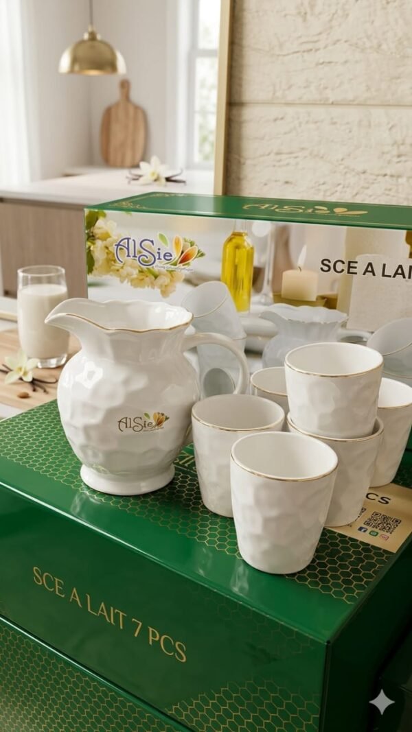 "AlSie – طقم سيراميك فاخر لتقديم الحليب"