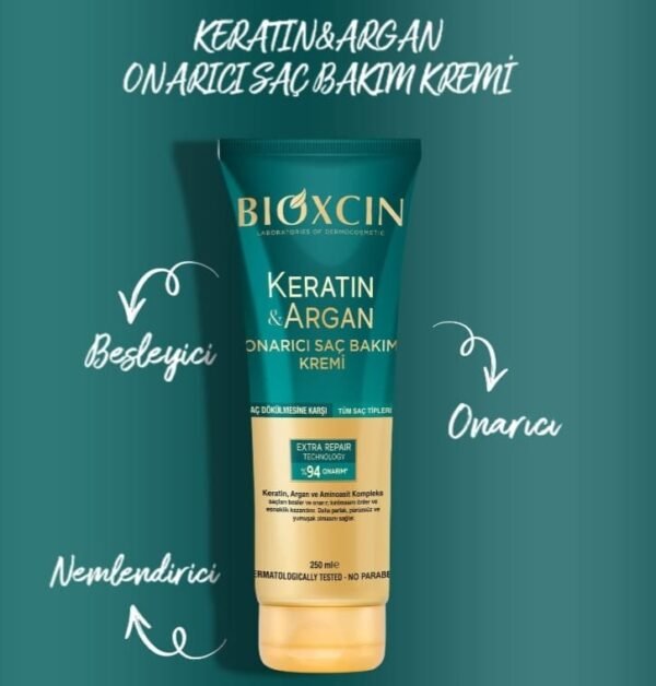 امنحي شعرك عناية متكاملة مع BIOXCIN Keratin & Argan Repair Hair Care Cream، الكريم المصمم خصيصًا لمكافحة تساقط الشعر وإصلاح التلف بفعالية عالية. تركيبته الفعّالة تجمع بين:
