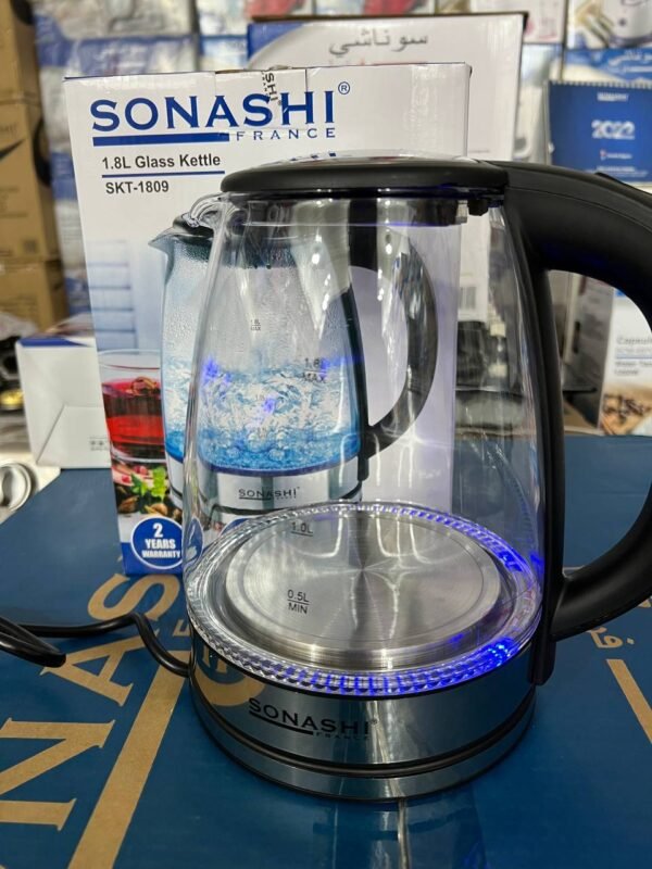 الفئة: أجهزة مطبخ – غلاية كهربائية زجاجية الموديل: SKT-1809 العلامة التجارية: Sonashi France