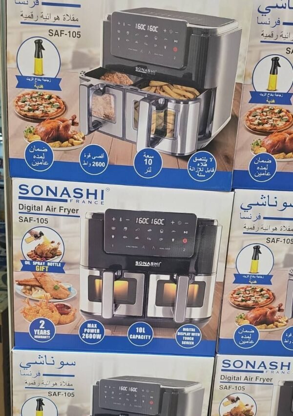 الفئة: أجهزة مطبخ – مقلاة هوائية رقمية مزدوجة الموديل: SAF-105 العلامة التجارية: Sonashi France